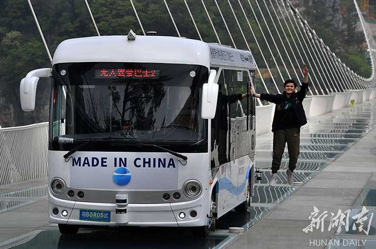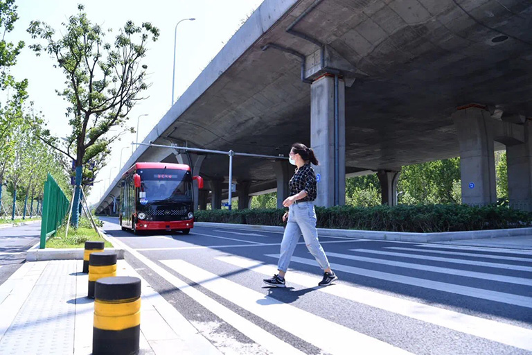 安凯无人驾驶客车遇斑马线和行人主动停车让行